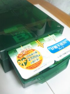 クリアなグリーンのダノンビオオリジナル専用ケースで