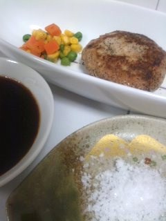 なんて思って、ハンバーグに塩とソースを添えてみました。